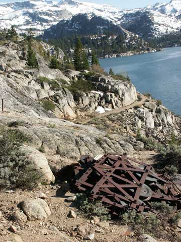 remnants of heavy steel machinery along the trail and lakeside. We saw